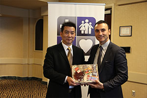 (图2:梁京峰赴加拿大交流,与专家互赠礼物)