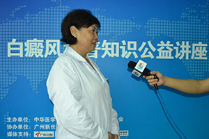 (图1:周华玲参加白癜风公益讲座,并接受采访)